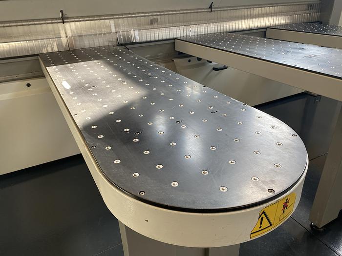 Числовое управление на ПК с операционной системой Windows и программным обеспечением OSI plus Программное обеспечение Quick Opti для оптимизации схем раскроя на станке + офисе OS- Программное обеспечение для нанесения графических этикеток Промышленный принтер этикеток Рабочие размеры 4500 x 2200 мм Максимальный выступ лезвия (мм) 108 Максимальное открытие зажимов для запирания панелей мм 100 Устройство для резки тонких панелей (примерно 4 мм) Система измерения панелей для ручной резки Задний подъемный стол (штабель при загрузке 630 мм) для автоматической загрузки с моторизованными роликами Пневматический щуп для расчета на подъемном столе рекомендуется для панелей с выступающим покрытием e гофрированные панели Пневматические захваты 10 на тележке толкателя. Стол для обработки тонких панелей с воздушной завесой Боковой выравниватель, встроенный в каретку пилы (мин. 0 мм - макс. 4200 мм) Система закрытия линии реза для предотвращения падения продольных планок Подъем лопастей с помощью бесщеточных двигателей и шарико-винтовых пар Контролируемое открытие прижима Устройство Digiset для электронной регулировки подрезного ножа с основным ножом Система быстрой смены лезвия Подрезной блок (макс. Диаметр лопасти / мощность) 200 / кВт 2,2 - с электронным отключением от пульта управления Основная группа лопастей (макс. Диаметр лопасти / мощность) 400 / кВт 18,5 Регулируемая скорость каретки пилы (м / мин) 1 - 160 с бесщеточным двигателем Скорость толкателя каретки 90 мт / мин с бесщеточным двигателем 4 стойки с воздушными завесами спереди с удлинением сверху до 3050 x 620 мм каждая Автоматическая смазка Защитные сетки Кондиционер для электрической панели