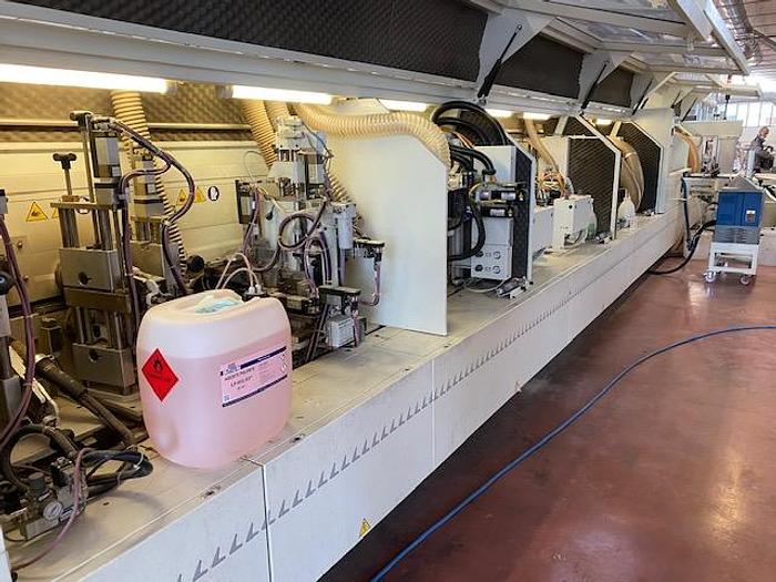 Lote 1 línea de escuadra compuesta de la siguiente manera: 1) Alimentador automático "Easy Order" para el paso longitudinal y transversal de los paneles * Ajuste automático de los topes según el tamaño del panel * Número de ciclos / minuto de 10 a 14 dependiendo del tipo de paso y tamaño del panel. El número de ciclos / minuto es mínimo en el caso de que se trabajen paneles de dimensiones siempre diferentes * Dimensiones trabajables para paso longitudinal: min 250 x 130 max 3000 x 1200 * Dimensiones trabajables para paso transversal: mín. 130 x 250 máx. 1200 x 3000 * Peso máximo panel: Kg 70 * Motores sin escobillas 2) Fresadora externa para procesamiento personalizado * Dispositivo para fresar y quitar material en el lado sin bordes del panel * Listo para "Eco Power Pack" * N ° 1 motor 6,5Kw - 12000 rpm con eje de rotación vertical * Exclusión vertical automática neumática * Lubricación automática de las guías 3) Sistema de puente para mecanizado longitudinal y transversal personalizado * Movimiento automático de la guía principal sobre guías lineales con motor Brusless * Exclusión vertical automática de la guía principal. * Lubricación automática de las guías * Apertura máxima 3000 mm 4) Supervisor de línea "Watch" con automatización para el movimiento y retorno del panel al operador * Control numérico con software de oficina para PC con sistema operativo Windows 7 * Lector de código de barras * Tele diagnóstico * Software de supervisión y control para una gestión rápida y sencilla de las principales funciones del máquina de escuadrar. * Interfaz realista y descriptiva que le permite monitorear el tiempo y el estado de la escuadradora de cantos. * Número ilimitado de programas * Posibilidad de extrapolación de informes de producción 5) Estación de carga manual con reconocimiento automático del tamaño de los paneles * N ° 3 bancos de cortina de aire (dim. 640 x 1600 mm cada uno) para el posicionamiento de los paneles con transportador de rodillos para el progreso de la misma * Transportador de rodillos de introducción inclinado y motorizado (dim.2600 x 3200 mm) para la alineación de los paneles en la guía principal * Guía principal controlada por C.N. para alineación con la línea de trabajo. * Lector de código de barras para reconocimiento automático de las dimensiones del panel introducido 6) Volteador de paneles * Transportador de rodillos con 6 + 6 rodillos motorizados * Grupo de doble plano para rotación * Rotación motorizada totalmente automática controlada por encoder con ajuste por C.N. * Transportador de rodillos motorizado a la salida de la escuadradora 7) estación de traducción de 90 ° * N ° 2 transfer con rodillos y correas (dimensiones 1440 x 3200 mm y 1600 x 3200 mm) 8) estación de traducción de 90 ° * N ° 2 transfer con rodillos y correas (dimensiones 1440 x 3200 mm y 1600 x 3200 mm) 9) Estación de rotación para paneles con un ancho superior a 1300 mm. * N ° 1 transportador de rodillos (dimensión 1280 x 2700 mm) 10) Transferencia con 3 cintas transportadoras 11) Estación de traducción final de 90 ° * N ° 1 transfer con rodillos y correas (dimensión 1440 x 3200 mm) * N ° 1 transfer con rodillos y correas (dimensión 110 x 3200 mm) 12) Máquina de escuadrón Stefani Evolution SB One * Control numérico con software de oficina para PC con sistema operativo Windows * Reproductor de DVD * Tele diagnóstico * Lector de códigos de barras con teclado de radiofrecuencia (con posibilidad de personalizar el software de lectura y entrada de datos) * Altura del panel 60 mm * Ancho mínimo del panel 90 mm * Ancho máximo del panel 1600 mm * Velocidad de avance variable 10 - 40 mt / min * Altura de trabajo regulable electrónicamente por C.N. * Grupo anti-adhesivo AA * Grupo triturador doble con posicionamiento electrónico Kw 5.8 + 5.8 * Unidad rectificadora con 2 Kw 4 motores de alta frecuencia con intervención automática RTE * Cargador portacarretes de 12 posiciones con cambio automático de borde de C.N. * Unidad de encolado para cola termofusible EVA con pre-fusor y recipiente de cola * Unidad de encolado para cola PUR con prefusor de Nordson * Grupo de presión de borde en perfiles rectos con rodillos de presión regulables electrónicamente por C.N. * Unidad de corte final con 2 motores con ajuste automático de la inclinación Kw 0.35 + 0.35 * Unidad de espigado con 2 motores basculantes regulables electrónicamente por C.N. - Kw 0,5 * Unidad de redondeo con 2 motores multifunción (espigador + redondeador) con ajuste de control numérico en automático 2M 100 * Unidad de tupí regulable electrónicamente por C.N. * Unidad rascadora de bordes electrónica gestionada electrónicamente por C.N. * Grupo raspador de pegamento RCA / 2C * Grupo de cepillos oscilantes SB / F * Tocador de doble filo PH / 1600