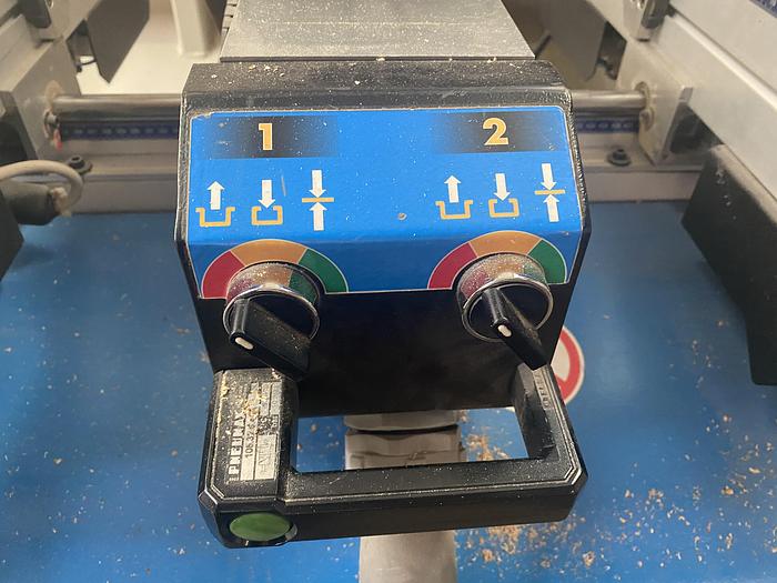 Numerical Control NC-PC und Windows-Betriebssystem Arbeitsplatte mit Stangen Maximale Bewegungsgeschwindigkeit der Achsen X - Y - Z / 100 - 50 - 180 m / min Nr. 8 Arbeitsstangen manuell verstellbar Nr. 3 Saugnäpfe für die Paneelunterstützung für jede Stange - manuell einstellbar Arbeitsfeld in X mm 4500 Arbeitsfeld in Y mm 1360 Arbeitsfeld in Z mm 110 Nr. 1 Vertikaler Pantograph mit automatischem Werkzeugwechsel Werkzeugwechselsystem am Bedienkopf an 8 Positionen positioniert Nr. 1 Horizontaler Stromabnehmer mit KW 3 Winkelgetriebe Nr. 1 Horizontaler Stromabnehmer mit Neigung KW 3 Bohrkopf mit N° 26 Spindeln so geteilt N ° 10 vertikale Spindeln in X N ° 10 vertikale Spindeln in Y N ° 4 horizontale Spindeln in X N ° 2 horizontale Spindeln in 2 Messereinheit im Bohrkopf integriert Sicherheitsmatten vorne Perimeterschutznetze Installierte Gesamtleistung 35 KW Maschinengewicht 5800 KG
