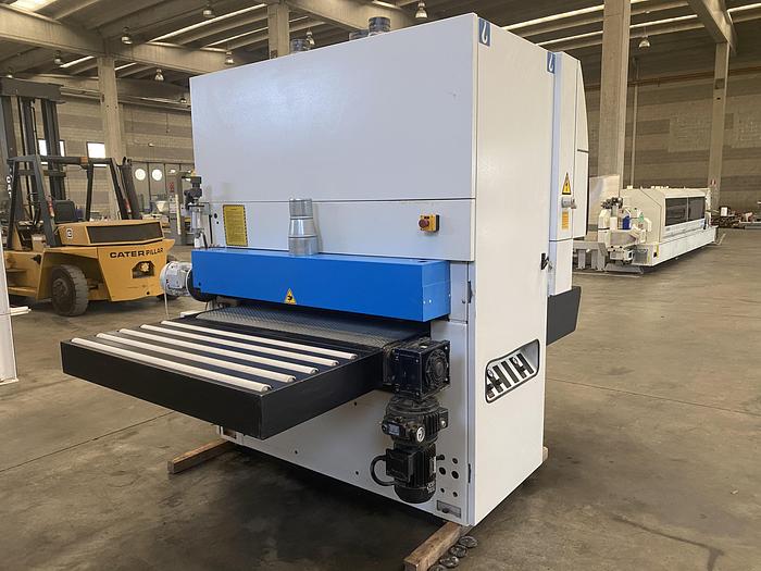 Control system with Hydra 25 color display Terminal with the possibility of memorizing program positions Automatic adjustment in real time of all the parameters necessary for processing Feed speed from 4.5 to 18 mt / min Working width 1350 mm Abrasive belt width 1370 mm Abrasive belt length 2620 mm Infeed roller table for long pieces Exit roller table for long pieces 60 sh rubber conveyor belt Automatic positioner of the working thickness table Working height 4 - 200 mm No. 3 working groups: * 1 Roll of diameter 250 mm. in rubber 30 sh * 2 Combined roller / pad assembly: Helically grooved steel roller Electronic EPICS pad sectioned into 46 sectors * 3 Brush group at the outlet Pneumatic on-off of the rollers Oscillating blower for belt cleaning 1/2 group two-speed motor 18.5 kw
