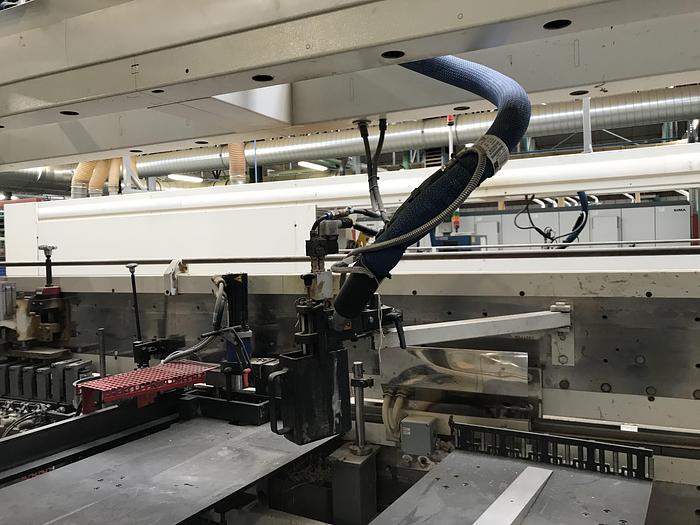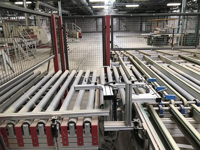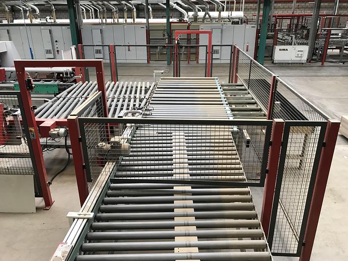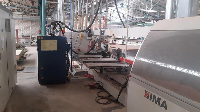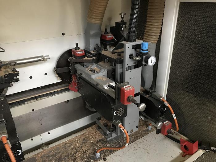 Double squaring edgebander usable as first or second machine in line NC 410 control Automatic opening max 3200 mm Pneumatic panel support bar for opening the machine over 2000 mm Max working height 60 mm Feed speed adjustable from CN up to 36 m \ min Feeding track with retractable pawls for squaring the panel Upper panel pressure rubberized belt Squaring part composed of: - Anti-splinter group - Double chipping unit Gluing unit with glue pot + pre-melter Edge holder magazine with 2 positions Electronic regulation of the edge pressure group End cutting unit with 2 motors Superimposed trimming unit with 2 motors Tilting gleaning unit with 2 motors Rounding unit with 4 motors Toupie unit tiltable 0-90 ° Edge scraper group Glue scraper group Sanding unit Brush group