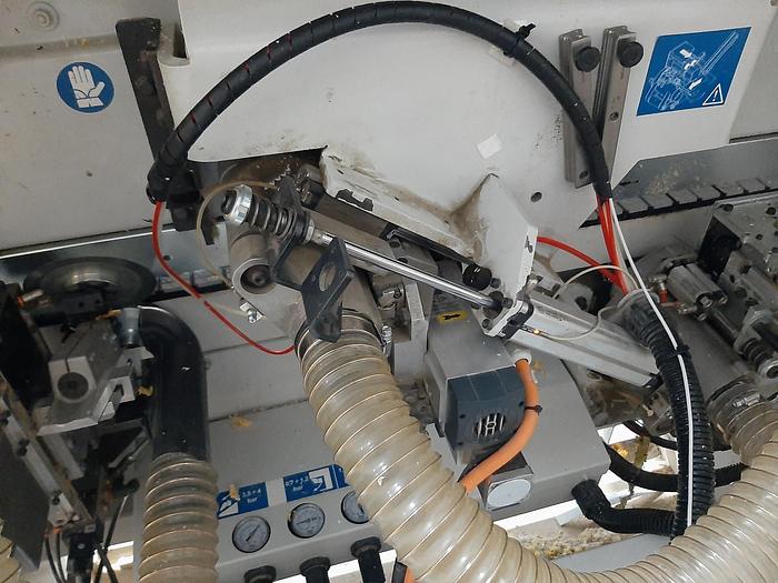 Numerical Control with Sintra Software Panel height 60 mm Solid mm 12 Pvc / Abs mm 0,4 - 3 Variable feed speed up to 18 mt / min Working height electronically adjustable by C.N. Input guide electronically adjustable by C.N. Side roller conveyor with idle wheels for panel support Anti-adhesive group Rectifier group with 2 adjustable motors Lamps to heat the edge of the panel Reel holder plate Gluing unit for EVA hot melt glue with pre-melter and glue pot Edge pressure group on straight profiles with electronically adjustable pressure rollers by C.N. End trimming unit with 2 motors with automatic inclination adjustment Gluing unit with 2 tilting motors electronically adjustable by C.N. Rounding unit with 2 multifunction motors (gleaner + rounder) with numerical control adjustment in automatic Electronic edge scraper unit electronically adjustable by C.N. Glue scraper group Oscillating brush group Phon unit for brightening the edge color
