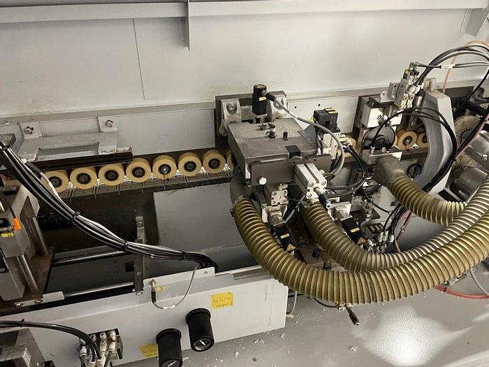 5000 working hours Power Touch control (touch screen system) with 21 "full HD video Panel height 60 mm Pvc / Abs mm 3 Solid wood up to 12 mm Feed speed up to 20 meters / min Working height electronically adjustable by C.N. Panel support guide with idle routines Side roller conveyor with idle wheels for panel support Anti-adhesive group Rectifier unit with two motors Reel holder plate Gluing unit for PUR glue with pre-melter and glue pot Edge pressure group on straight profiles with pressure rollers automatically adjustable by numerical control End trimming unit with automatic inclination adjustment Overlapping trimming unit with 2 motors Gluing unit MS 40/45 with two motors with automatic adjustment by numerical control MF 50 rounding unit with 2 multifunction motors (gleaner + rounder) with control adjustment numeric automatically Edge scraping unit MZ 40 with electronic regulation by numerical control Glue scraping unit Brush group Non-stick group