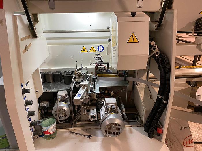 Startouch Numerical Control Panel height 60 mm Solid wood mm 8 Pvc / Abs mm 3 Panel support guide Variable feed speed up to 12 (18 optional) mt / min Working height electronically adjustable by C.N. Side roller conveyor with idle wheels for panel support Anti-adhesive group Lamps to heat the edge of the panel Reel holder plate Gluing unit for EVA hot melt glue with pre-melter and glue pot Edge pressure group on straight profiles with electronically adjustable pressure rollers by C.N. End trimming unit with 2 motors Trimming / gleaning unit with 2 tilting motors electronically adjustable by C.N. Rounding unit with 2 multifunction motors (gleaner + rounder) Misting device for delicate edges Edge scraper unit electronically adjustable by C.N. Glue scraper group Brush group with 2 motors