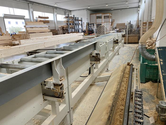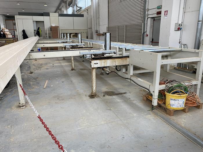 6-axis machining center suitable for all companies operating in the wood construction sector, from cutting carpentry to tree trunk houses. The strengths are absolutely: * Maximum productivity * High number of processing possibilities * Outstanding accuracy The machine is composed as follows: * Numerical Control with Oikos HT Software - Quick link * Cutting optimization system * Bar code label printer * Working dimension in Y 1250 mm * Loading \ unloading system (No Buffer) for beams with a maximum length of 13.5 meters * N ° 1 6-axis milling module with KW 13 - 6000 RPM electrospindle, with feeler unit * Loading and unloading system by means of a system with pliers for locking the workpiece * Automatic tool change with 12 positions * Blade post d = 500 mm * Unloading system by motorized belt * Cabin of protection and safety * N ° 1 mortising head L mm 300 * Loading system from right to left