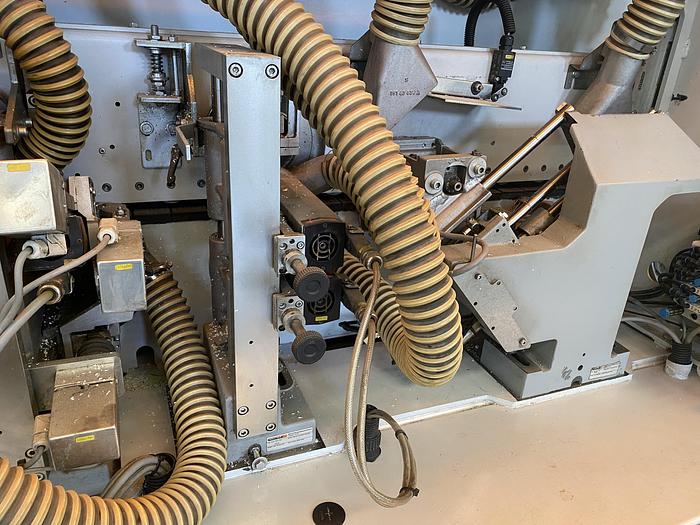 Numerical Control Edgecontrol PPC 221 Panel height 60 mm Solid wood mm 8 Pvc / Abs mm 3 Feed speed up to mt / min 18 Working height electronically adjustable by C.N. Motorized and electronically adjustable panel support guide by C.N. Side roller conveyor with idle wheels for panel support Rectifier group with 2 motors Reel holder plate Glueing unit for EVA glue Glue Jet Automatic system Edge pressure group on straight profiles with electronically adjustable pressure rollers by C.N. End trimming unit with 2 motors Trimming \ gluing unit with 2 tilting motors electronically adjustable by C.N. Rounding unit with 1 multifunction motors (gleaner + rounder) with numerical control adjustment in automatic Edge scraper group Glue scraper group Brushes group